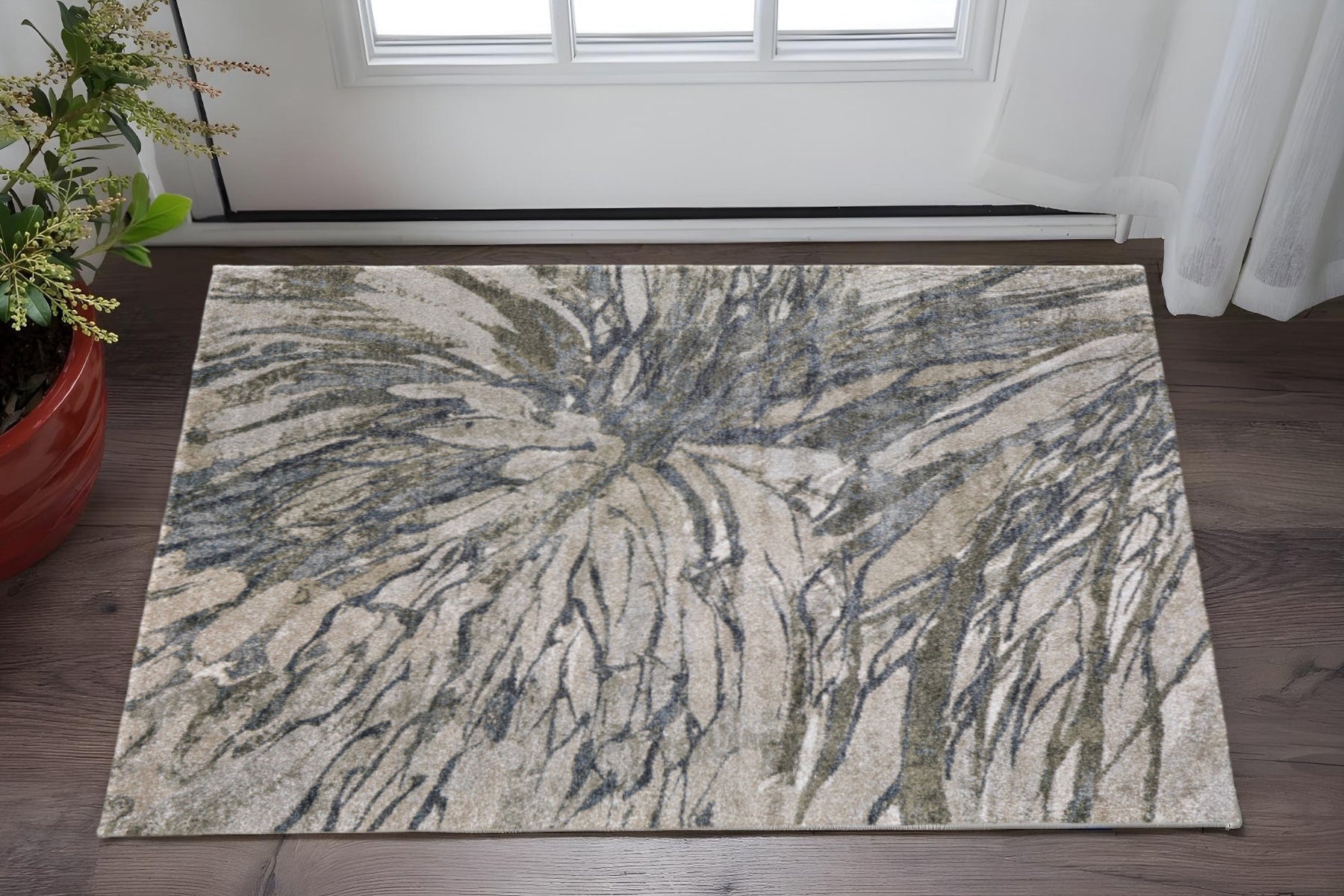 Add great coloration and comfortable texture to your space with this 2-foot x 3-foot gray green and ivory abstract area rug. Ideal for spaces with kids and pets, this rug is stain resistant to help repel dirt and spilled liquids. Built to last, this rug crafted from polypropylene blend fibers is known for its durability and long lasting appeal. Rugs are a great way to showcase your style, hide imperfections, warm your home and reduce noise. This smaller sized, bohemian styled rug is just what you need for your walkway, bedside, in front of door, cabinet, refrigerator, or chair. 21-inch h x 34-inch w x 1-inch d.