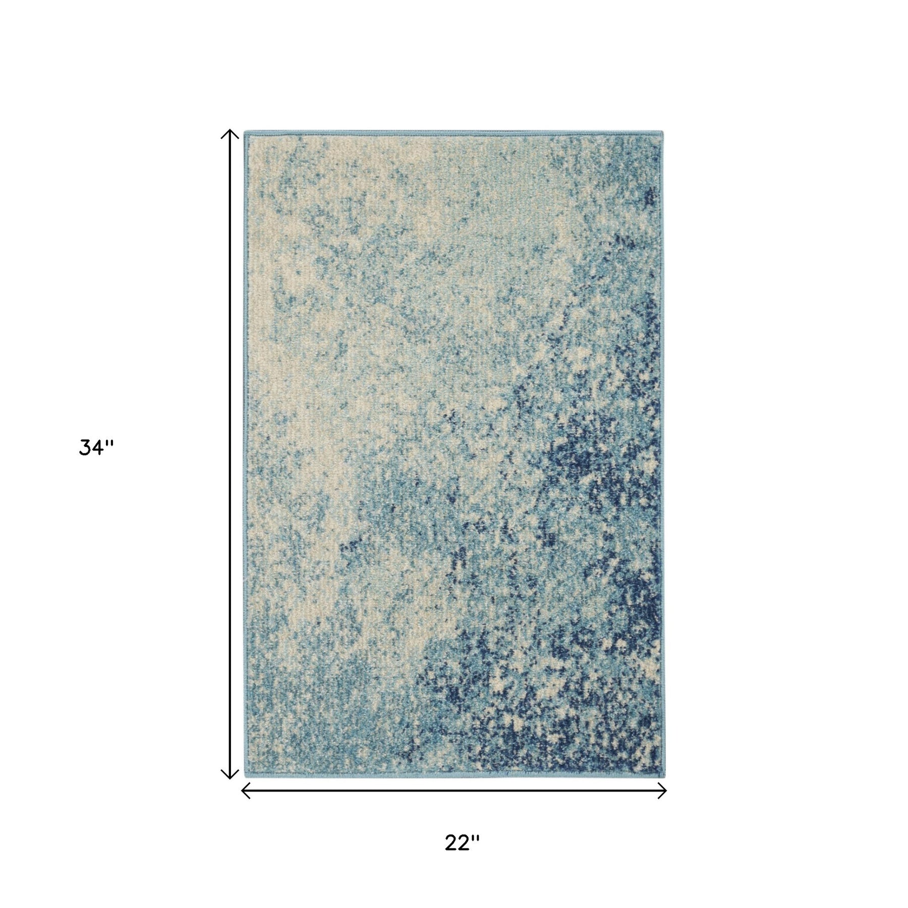 Set an inviting tone in your space with this 2-foot x 3-foot blue and ivory abstract area rug. Built to last, this rug crafted from polypropylene fibers is known for its durability and long lasting appeal. Rugs are a great way to showcase your style, hide imperfections, warm your home and reduce noise. This smaller sized, transitional styled rug is just what you need for your walkway, bedside, in front of door, cabinet, refrigerator, or chair. 22-inch h x 34-inch w x 0.5-inch d.