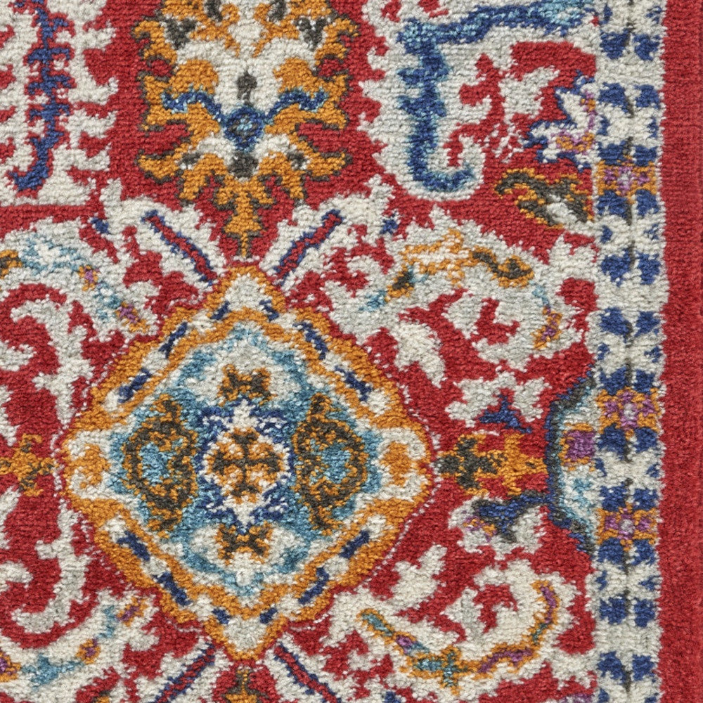 Add some artistry to your room with this 2-foot x 3-foot red and ivory damask area rug. Built to last, this rug crafted from polypropylene fibers is known for its durability and long lasting appeal. Rugs are a great way to showcase your style, hide imperfections, warm your home and reduce noise. This smaller sized, transitional styled rug is just what you need for your walkway, bedside, in front of door, cabinet, refrigerator, or chair. 22-inch h x 34-inch w x 0.5-inch d.