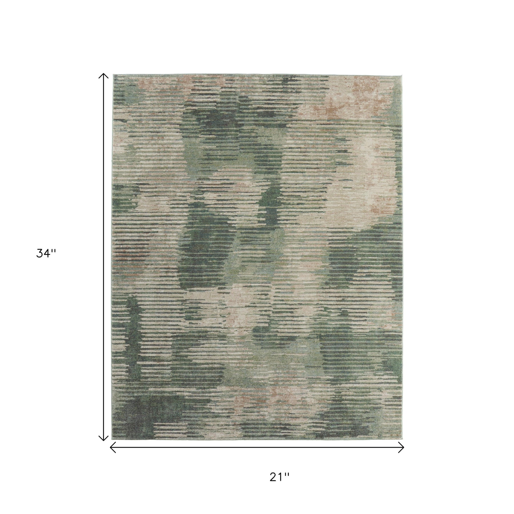 Add some artistry to your room with this 2-foot x 3-foot green ivory and brown abstract distressed area rug. Ideal for spaces with kids and pets, this rug is stain resistant to help repel dirt and spilled liquids. Built to last, this rug crafted from polypropylene blend fibers is known for its durability and long lasting appeal. Rugs are a great way to showcase your style, hide imperfections, warm your home and reduce noise. This smaller sized, industrial styled rug is just what you need for your walkway, bedside, in front of door, cabinet, refrigerator, or chair. 21-inch h x 34-inch w x 0.47-inch d.