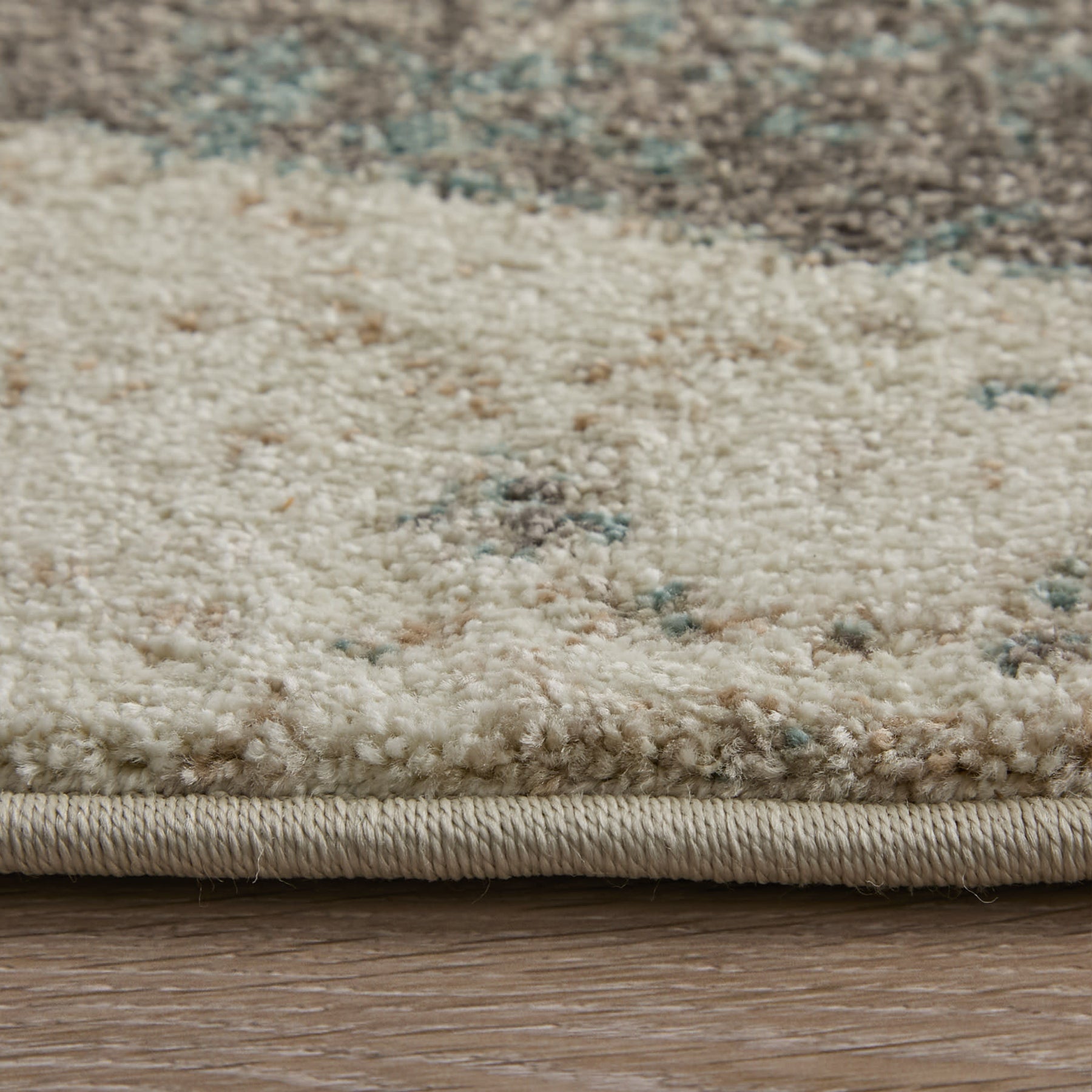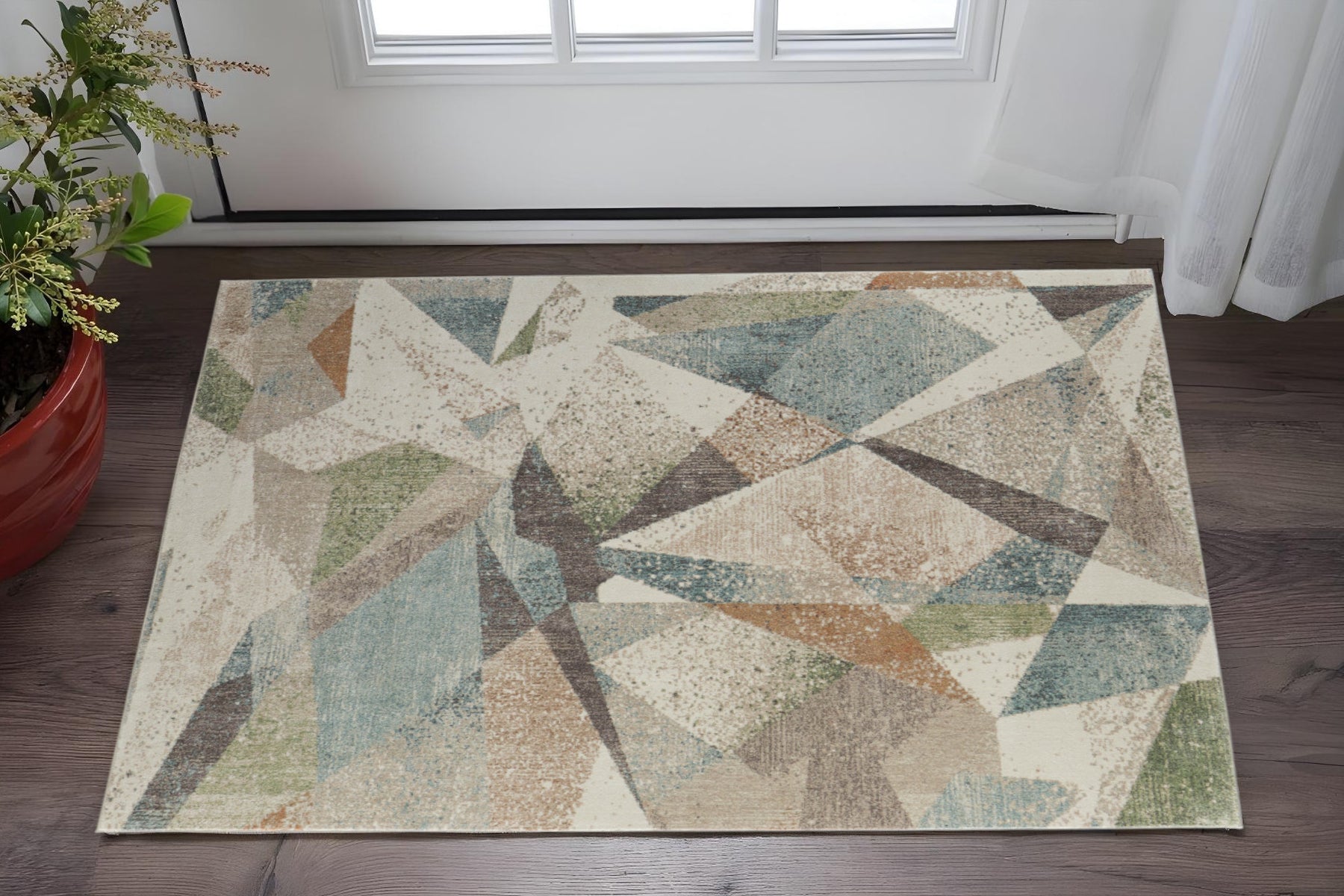 Add great coloration and comfortable texture to your space with this 2-foot x 3-foot ivory blue and green checkered area rug. Ideal for spaces with kids and pets, this rug is stain resistant to help repel dirt and spilled liquids. Built to last, this rug crafted from polypropylene blend fibers is known for its durability and long lasting appeal. Rugs are a great way to showcase your style, hide imperfections, warm your home and reduce noise. This smaller sized, bohemian styled rug is just what you need for your walkway, bedside, in front of door, cabinet, refrigerator, or chair. 21-inch h x 34-inch w x 0.47-inch d.