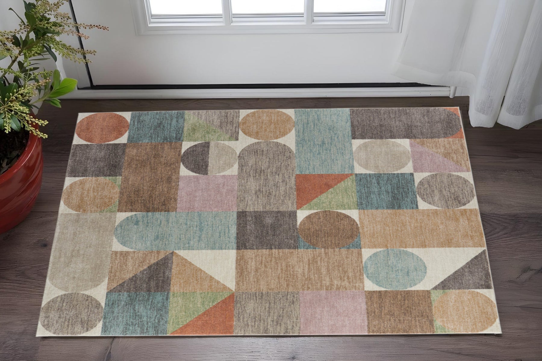 Add great coloration and comfortable texture to your space with this 2-foot x 3-foot ivory brown and blue checkered area rug. Ideal for spaces with kids and pets, this rug is stain resistant to help repel dirt and spilled liquids. Built to last, this rug crafted from polypropylene blend fibers is known for its durability and long lasting appeal. Rugs are a great way to showcase your style, hide imperfections, warm your home and reduce noise. This smaller sized, modern styled rug is just what you need for your walkway, bedside, in front of door, cabinet, refrigerator, or chair. 21-inch h x 34-inch w x 0.47-inch d.