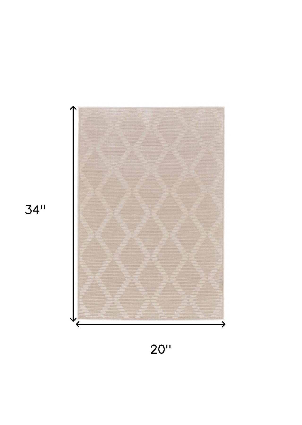 Add some artistry to your room with this 2' x 3' ivory and tan geometric stain resistant area rug. This rectangle shaped rug features a geometric design in ivory and tan to give it visual interest. A classic shape marries with good looking design for your space This superior Turkish rug represents the highest quality and is built to last. Ideal for spaces with kids and pets, this rug is stain resistant to help repel stains and spilled liquids. Place this area rug against a hardwood or tile floor and it will enliven your living space with style and sophistication. 0.39" H x 20" W x 34" D