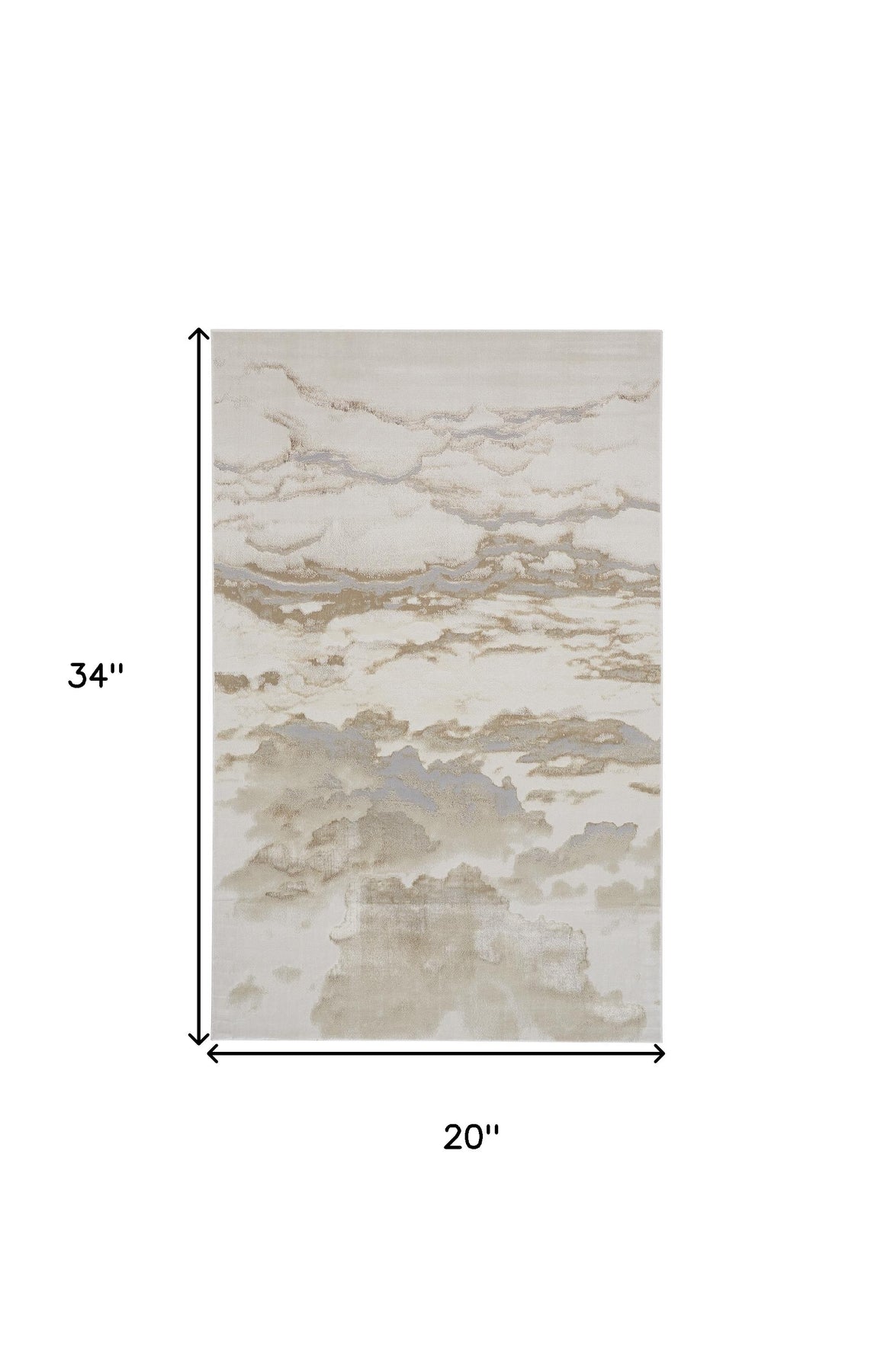 This 2' x 3' ivory tan and gray abstract stain resistant area rug, is a great way to add warmth to a room. This rectangle shaped rug features a abstract design in ivory tan and gray to give it visual interest. A classic shape marries with good looking design for your space This superior Turkish rug represents the highest quality and is built to last. Ideal for spaces with kids and pets, this rug is stain resistant to help repel stains and spilled liquids. Place this area rug against a hardwood or tile floor and it will enliven your living space with style and sophistication. 0.39" H x 20" W x 34" D