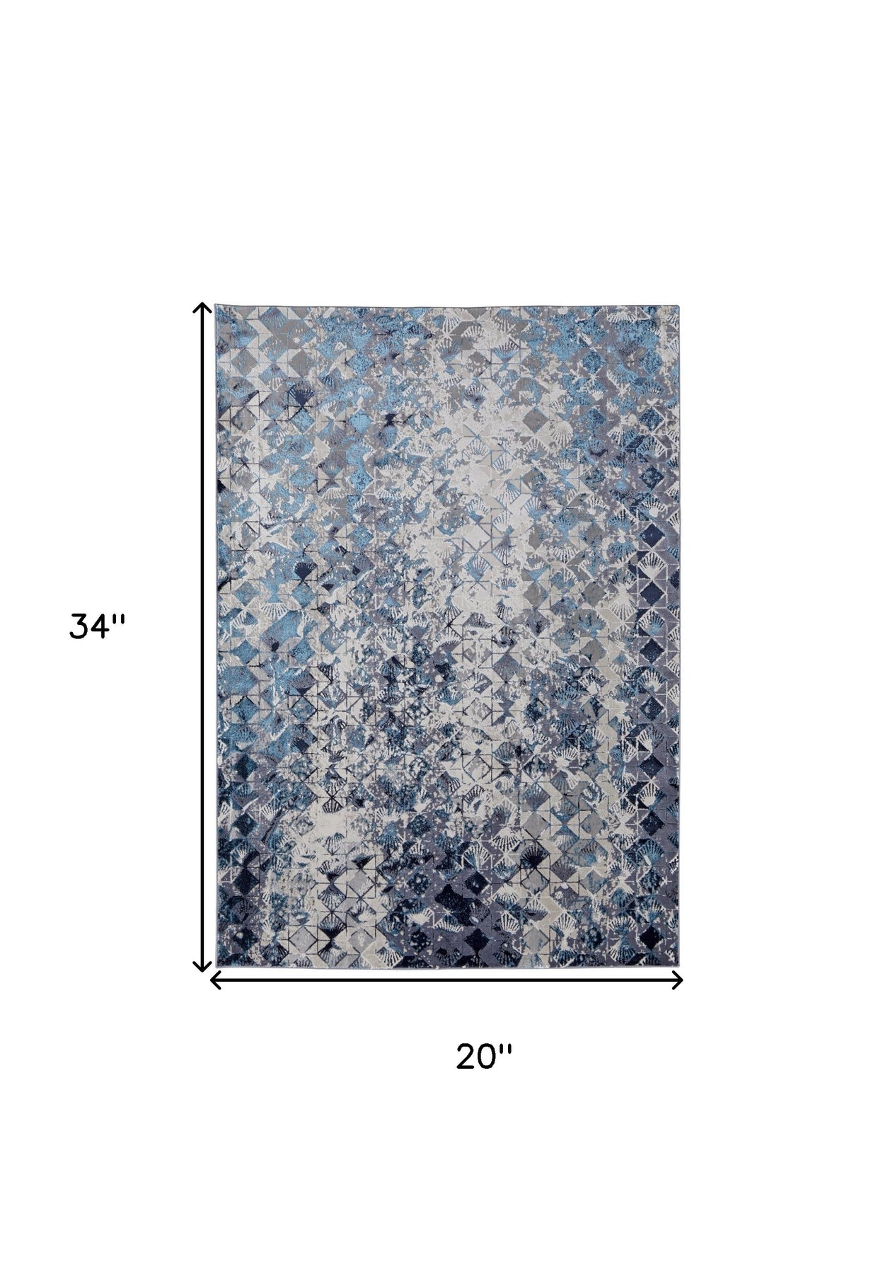 Set an inviting tone in your space with this 2-foot x 3-foot blue and ivory abstract power loom distressed area rug. This rectangle shaped rug features a abstract design that will add a functional and decorative accent to your space. Ideal for spaces with kids and pets, this rug is stain resistant to help repel dirt and spilled liquids. This smaller sized rug is just what you need for your walkway, or in front of door, cabinet, refrigerator, or chair. 20-inch h x 34-inch w x 0.39-inch d