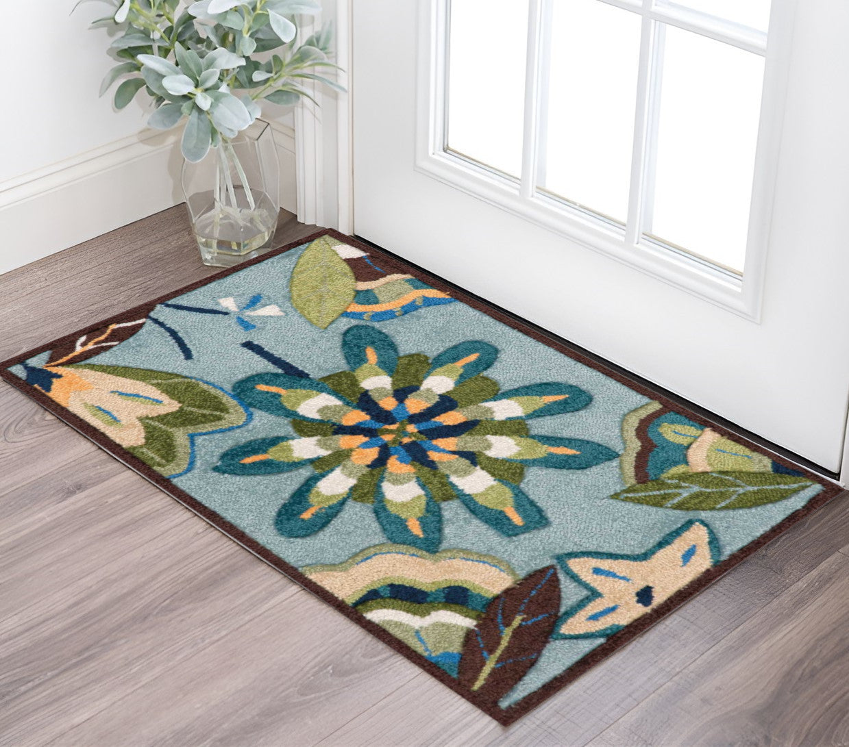 Set an inviting tone in your space with this 2-foot x 3-foot blue floral hand carved handmade area rug. Ideal for spaces with kids and pets, this rug is stain resistant to help repel dirt and spilled liquids. Crafted by skilled artisans, this hand carved rug is genuine and unique. No two will be exactly alike. Built to last, this rug crafted from polyester fibers is known for its durability and long lasting appeal. Rugs are a great way to showcase your style, hide imperfections, warm your home and reduce noise. This smaller sized, contemporary styled rug is just what you need for your walkway, bedside, in front of door, cabinet, refrigerator, or chair. 21-inch h x 33-inch w x 0.25-inch d