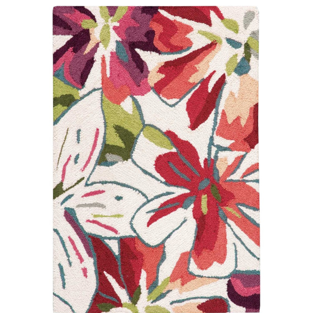 Set an inviting tone in your space with this 2-foot x 3-foot ivory green and red floral hand carved handmade area rug. Ideal for spaces with kids and pets, this rug is stain resistant to help repel dirt and spilled liquids. Crafted by skilled artisans, this hand carved rug is genuine and unique. No two will be exactly alike. Built to last, this rug crafted from polyester fibers is known for its durability and long lasting appeal. Rugs are a great way to showcase your style, hide imperfections, warm your home and reduce noise. This smaller sized, contemporary styled rug is just what you need for your walkway, bedside, in front of door, cabinet, refrigerator, or chair. 21-inch h x 33-inch w x 0.25-inch d