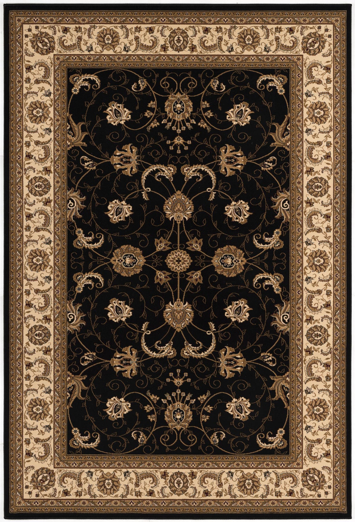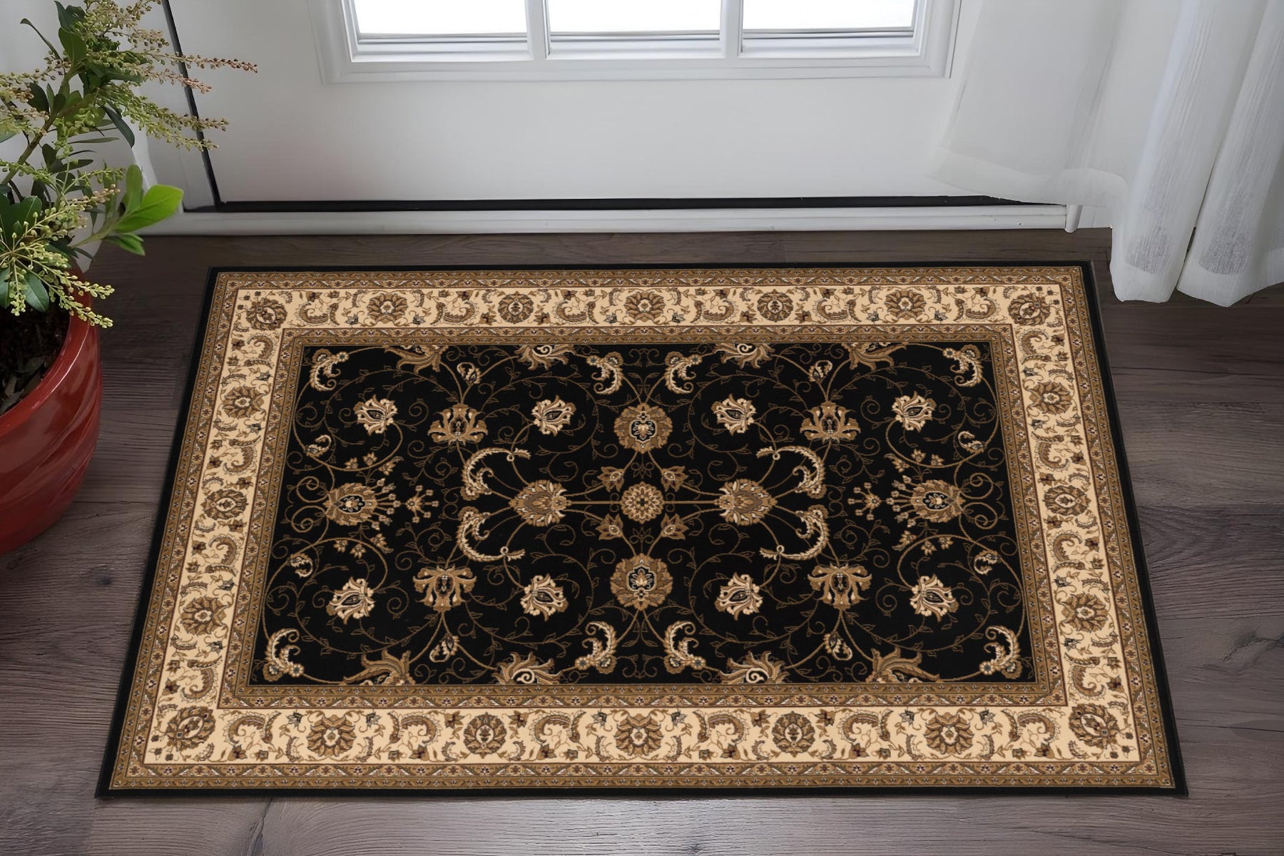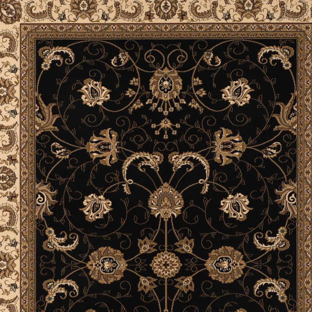 Set an inviting tone in your space with this 2-foot x 3-foot black beige and brown oriental area rug. Ideal for spaces with kids and pets, this rug is stain resistant to help repel dirt and spilled liquids. Built to last, this rug crafted from polypropylene fibers is known for its durability and long lasting appeal. Rugs are a great way to showcase your style, hide imperfections, warm your home and reduce noise. This smaller sized, traditional styled rug is just what you need for your walkway, bedside, in front of door, cabinet, refrigerator, or chair. 24-inch h x 32-inch w x 0.35-inch d.