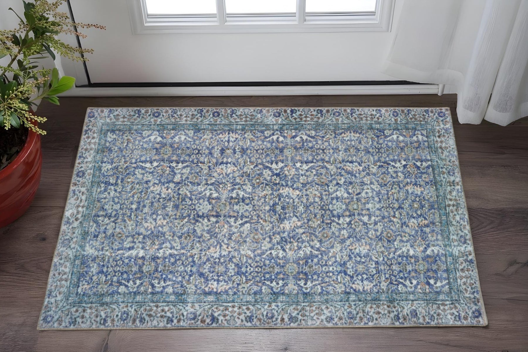 Add some artistry to your room with this 2' x 3' blue and grey oriental power loom stain resistant area rug. This rectangle shaped rug features a oriental design in blue and grey to give it visual interest. A classic shape marries with good looking design for your space Made in Turkey, this rug offers high quality combined with good looking designer sensibilities. Ideal for spaces with kids and pets, this rug is stain resistant to help repel stains and spilled liquids. Place this area rug against a hardwood or tile floor and it will enliven your living space with style and sophistication. 0.07" H x 20.87" W x 31.5" D