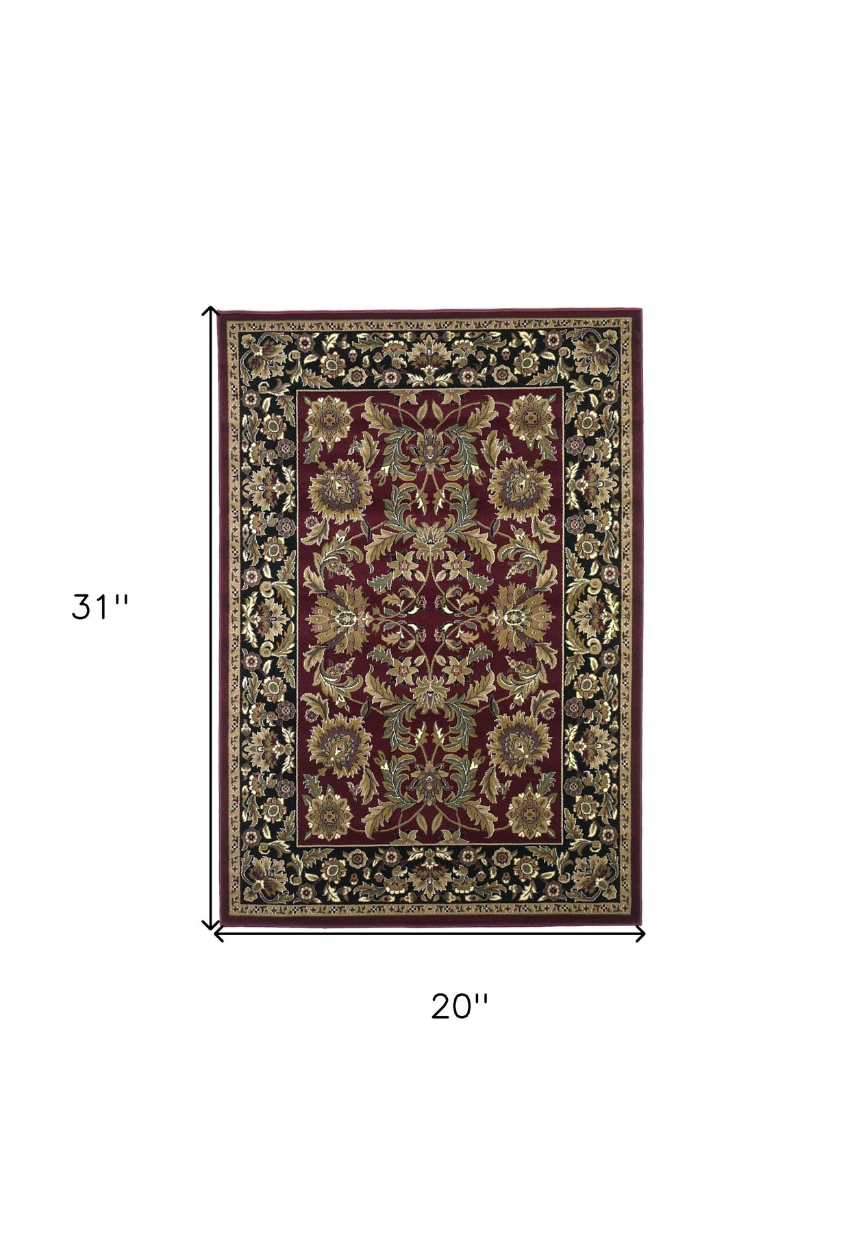 Jazz up your home with this breathtaking red/black traditional floral style rug, which will make artistry out of your floors. Its a worldly piece, which will definitely impress all who see it and turn the heads of your friends and guests. This rug is a high quality piece made in China, which is machine-made of heat-set polypropylene with no backing. Its current color palette in classic and transitional patterns will give an appealing modern feel to the look and feel of your home. As for measurements, they are 1/2" for height, 20" for width, and 31" for depth. To care for it, vacuum it regularly and spot clean any stains. Its also recommended that you have it professionally cleaned every now and then. If you want a lovely and practical rug that can blend seamlessly into any decor, this is the one for you.