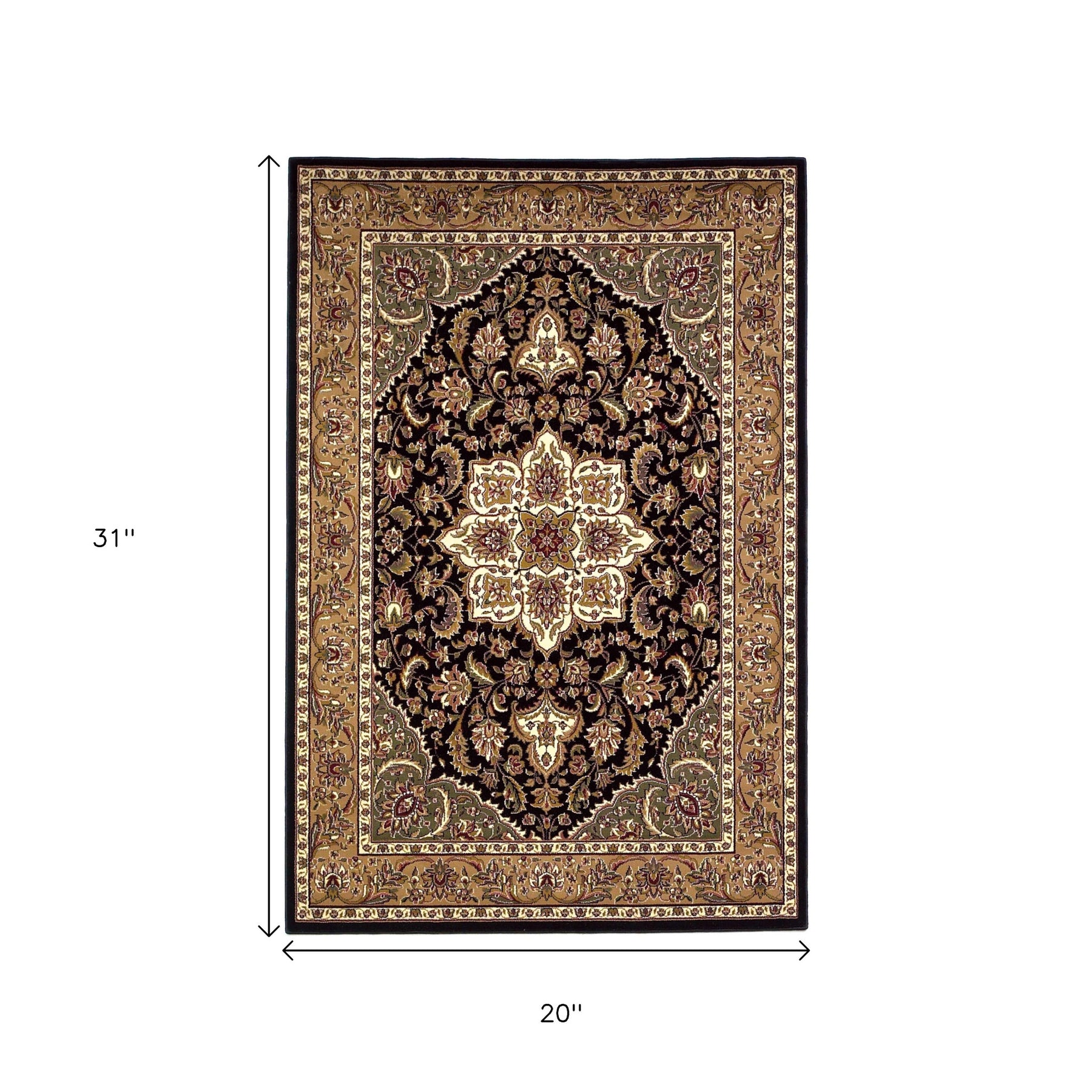 Add some artistry to your room with this 2' x 3' beige and black floral medallion area rug. This rectangle shaped rug features a floral medallion design in beige and black to give it visual interest. A classic shape marries with good looking design for your space Place this area rug against a hardwood or tile floor and it will enliven your living space with style and sophistication. 0.5" H x 20" W x 31" D