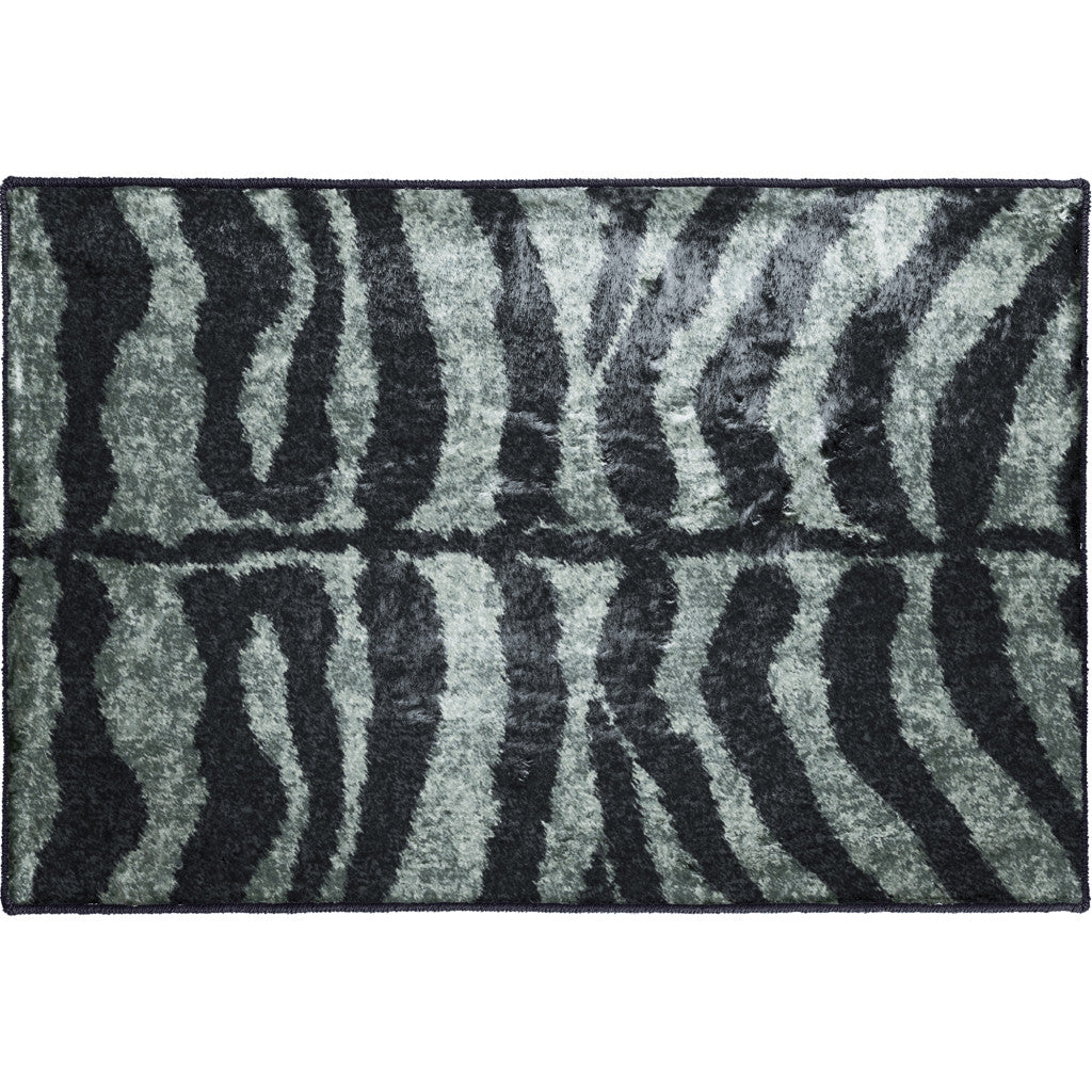 Add some artistry to your room with this 2-foot x 3-foot black and gray zebra print shag handmade non skid area rug. This rectangle shaped rug features a animal print design that will add a functional and decorative accent to your space. The coloration of this rug infuses an updated and modern vibe into your space. The retro shag construction of this luxurious rug will provide a soft and comfortable barrier to color tile and hardwood floors. This smaller sized rug is just what you need for your walkway, or in front of door, cabinet, refrigerator, or chair. 20-inch h x 30-inch w x 0.86-inch d