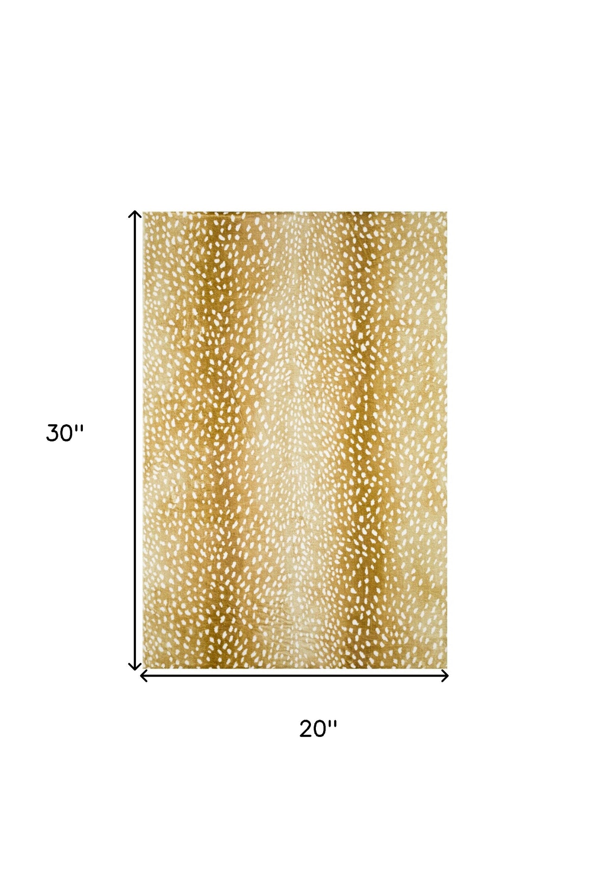 Set an inviting tone in your space with this 2-foot x 3-foot gold gazelle print shag handmade non skid area rug. This rectangle shaped rug features a animal print design that will add a functional and decorative accent to your space. The retro shag construction of this luxurious rug will provide a soft and comfortable barrier to color tile and hardwood floors. This smaller sized rug is just what you need for your walkway, or in front of door, cabinet, refrigerator, or chair. 20-inch h x 30-inch w x 0.86-inch d