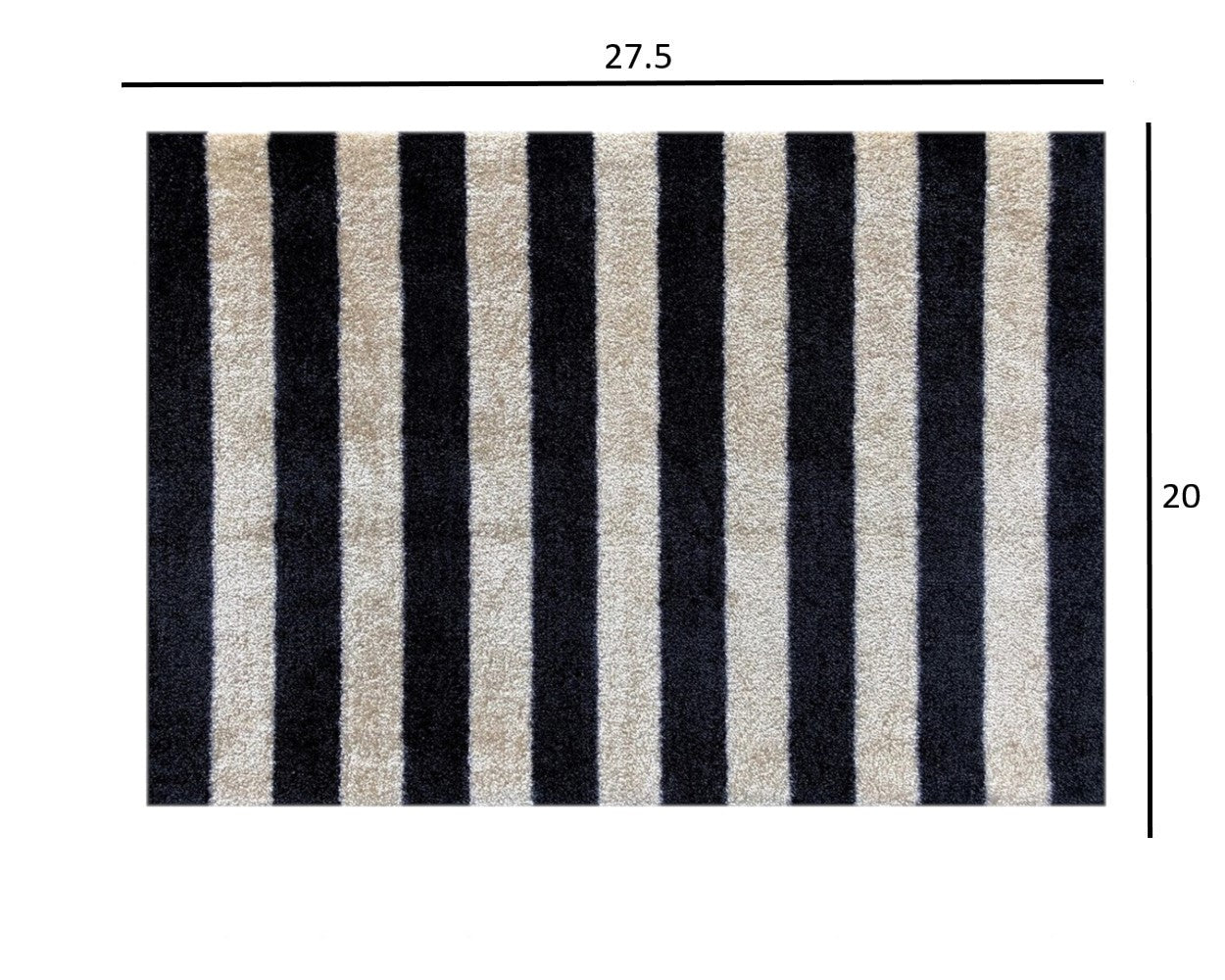 This low profile Black and Tan Wide Stripe Floor Mat is a game changer. A fade resistant slightly distressed modern black and tan wide stripe design that is a fashion forward look for a mat that is super sturdy and can easily be thrown into the washer and dryer to clean. The premier formula rubber backing used makes this nylon rug slip resistant with no need for an additional pad, and the backing will hold up during the wash and dry! The low profile means it easily fits under doors. Combine fashion and style with real life functionality with this great area rug/door mat. 20-inch H x 27.5-inch W x 1-inch D