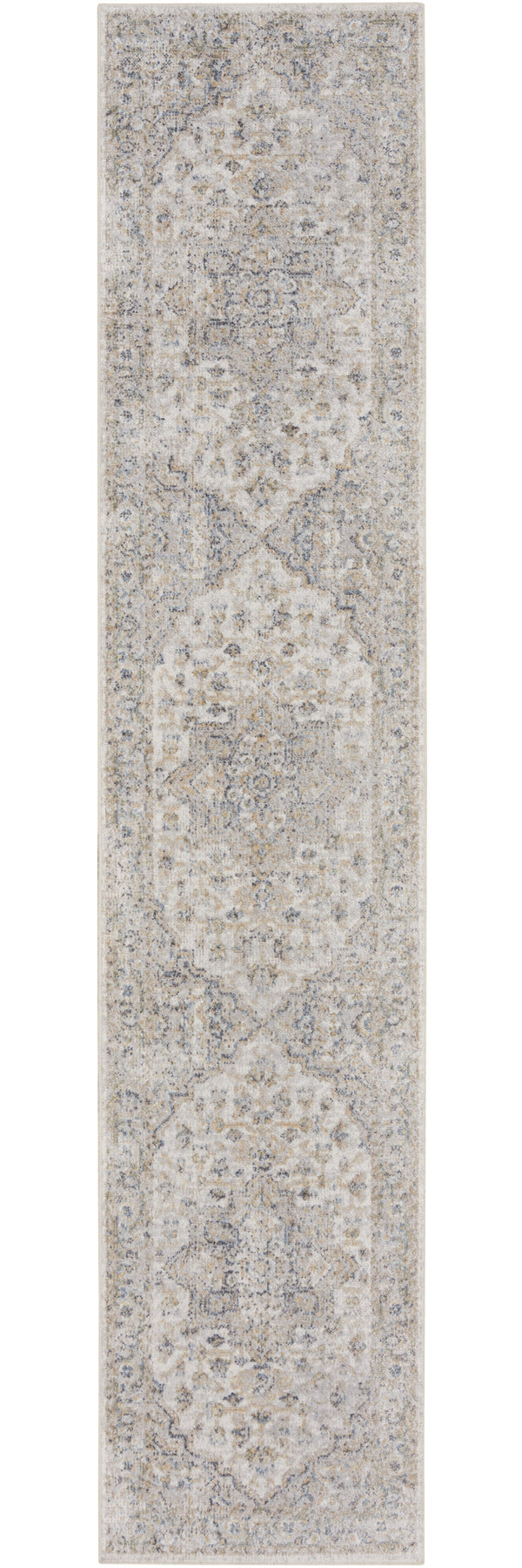 Add great coloration and comfortable texture to your space with this 12' silver oriental power loom washable runner rug. This runner shaped rug features a oriental design in silver to give it visual interest. A classic shape marries with good looking design for your space This superior Turkish rug represents the highest quality and is built to last. Area Rugs help to give warmth and sense of home to your space. .25" H x 26.00" W x 144.00" D