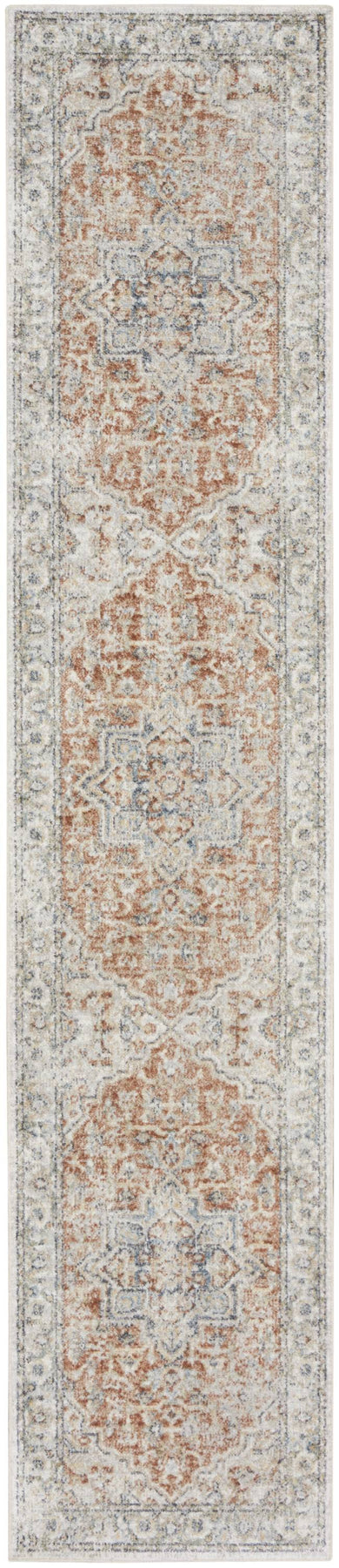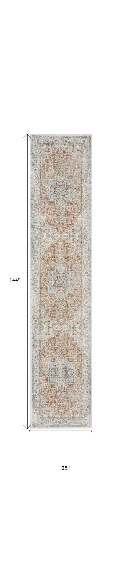 This 12-foot gold and ivory oriental washable runner rug, is a great way to add warmth to a room. Built to last, this rug crafted from polyester fibers is known for its durability and long lasting appeal. Rugs are a great way to showcase your style, hide imperfections, warm your home and reduce noise. This rectangular shaped rug features a abstract design that will add a functional and decorative accent to your space. This traditional style runner makes a great accent for the hallway, in front of cabinets, in the laundry room, or any other space you need a narrow and long rug. 26-inch h x 144-inch w x 0.25-inch d.