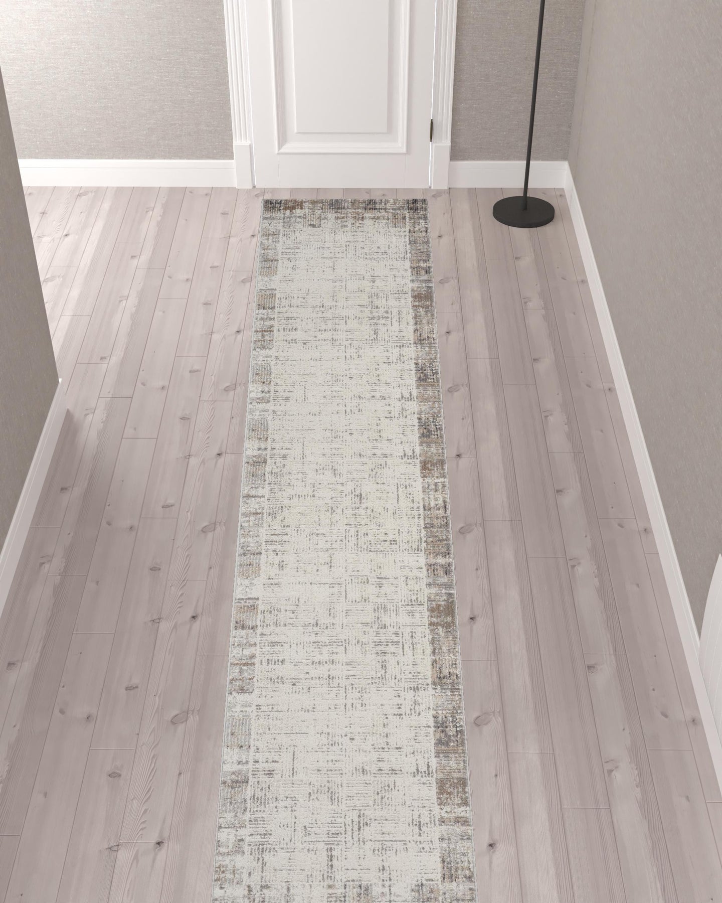 Set an inviting tone in your space with this 12' gray abstract power loom runner rug. This runner shaped rug features a abstract design in gray to give it visual interest. A classic shape marries with good looking design for your space This superior Turkish rug represents the highest quality and is built to last. Area Rugs help to give warmth and sense of home to your space. .25" H x 26.00" W x 144.00" D