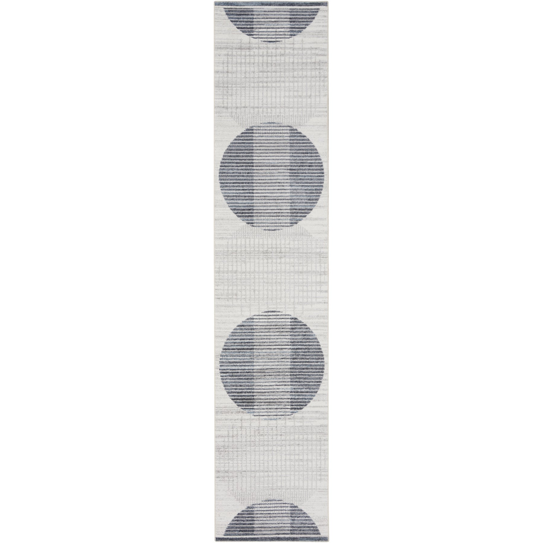 Add great coloration and comfortable texture to your space with this 12-foot blue and ivory geometric washable runner rug. Built to last, this rug crafted from polyester fibers is known for its durability and long lasting appeal. Rugs are a great way to showcase your style, hide imperfections, warm your home and reduce noise. This rectangular shaped rug features a abstract design that will add a functional and decorative accent to your space. This mid-century style runner makes a great accent for the hallway, in front of cabinets, in the laundry room, or any other space you need a narrow and long rug. 26-inch h x 144-inch w x 0.25-inch d.