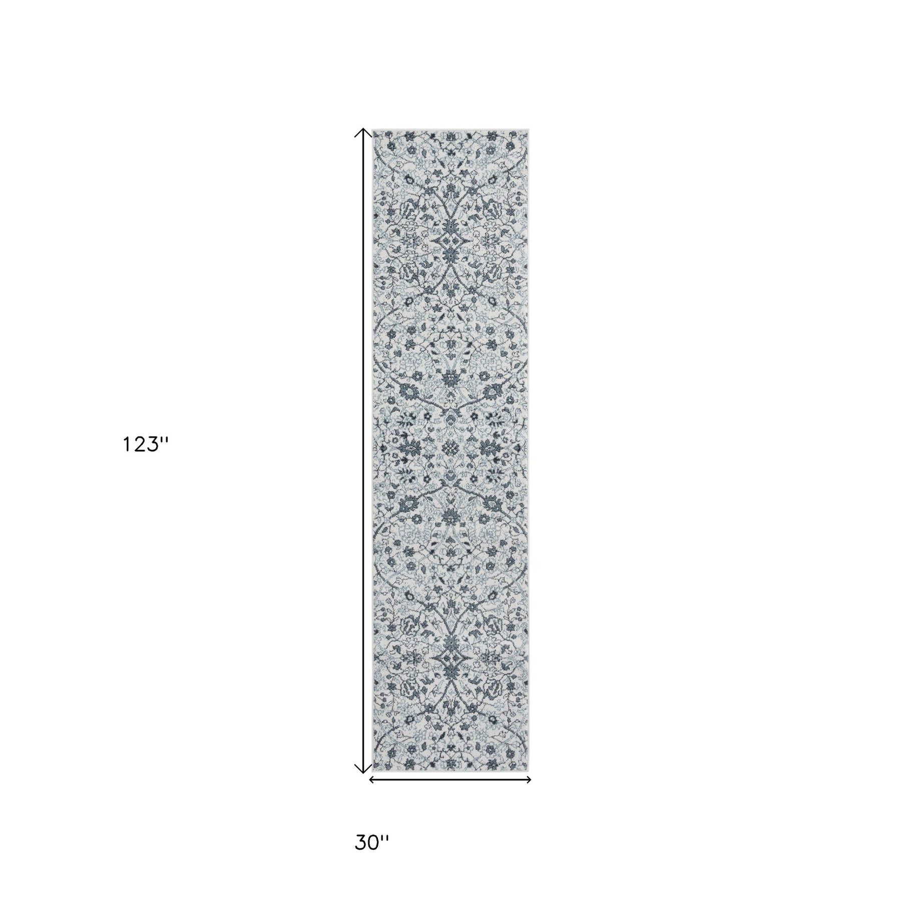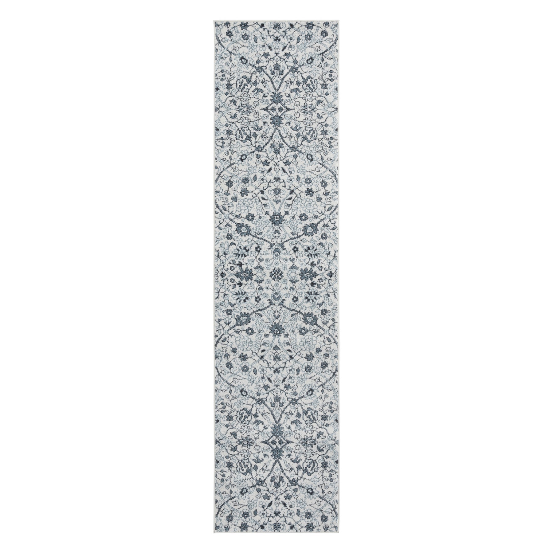 Add some artistry to your room with this 10-foot charcoal and gray floral power loom runner rug. This runner shaped rug features a floral design in charcoal and gray to give it visual interest. A classic shape marries with good looking design for your space ideal for spaces with kids and pets, this rug is stain resistant to help repel stains and spilled liquids. Area rugs help to give warmth and sense of home to your space. 30-inch H x 123-inch W x 0.38-inch D