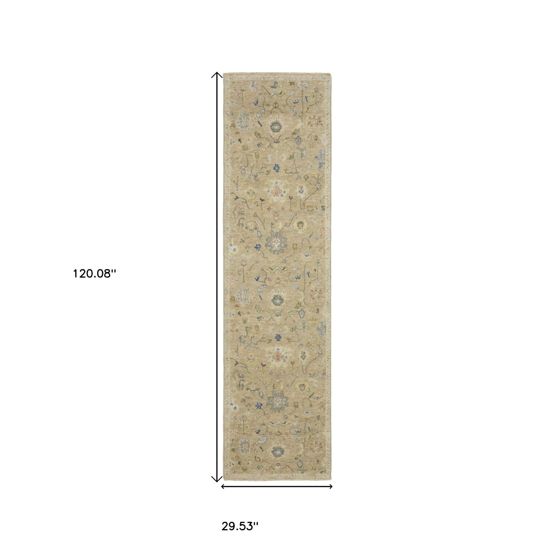 Set an inviting tone in your space with this 10-foot beige wool oriental hand knotted runner rug with fringe. This runner shaped rug features a oriental design in beige to give it visual interest. A classic shape marries with good looking design for your space the coloring of this rug adds a delightfully neutral tone to your home and will easily match with most any decor. Tassel ends bring a timeless and fashionable look to your interior. Crafted by skilled artisans, this hand knotted rug is genuine and unique. No two will be exactly alike. Place this area rug against a hardwood or tile floor and it will enliven your living space with style and sophistication. 29.53-inch H x 120.08-inch W x 0.16-inch D
