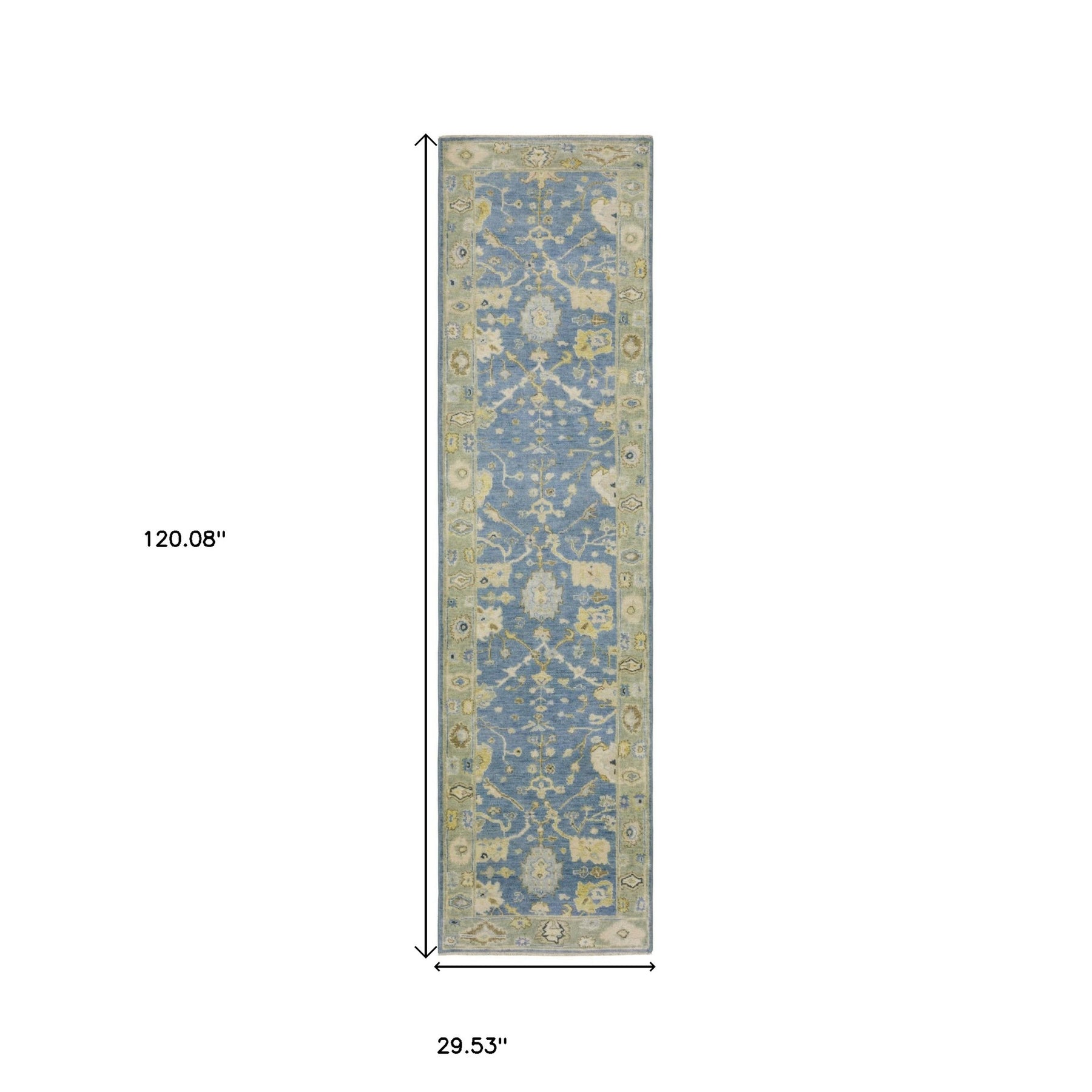 This 10-foot blue wool oriental hand knotted runner rug with fringe, is a great way to add warmth to a room. This runner shaped rug features a oriental design in blue to give it visual interest. A classic shape marries with good looking design for your space tassel ends bring a timeless and fashionable look to your interior. Crafted by skilled artisans, this hand knotted rug is genuine and unique. No two will be exactly alike. Place this area rug against a hardwood or tile floor and it will enliven your living space with style and sophistication. 29.53-inch H x 120.08-inch W x 0.16-inch D