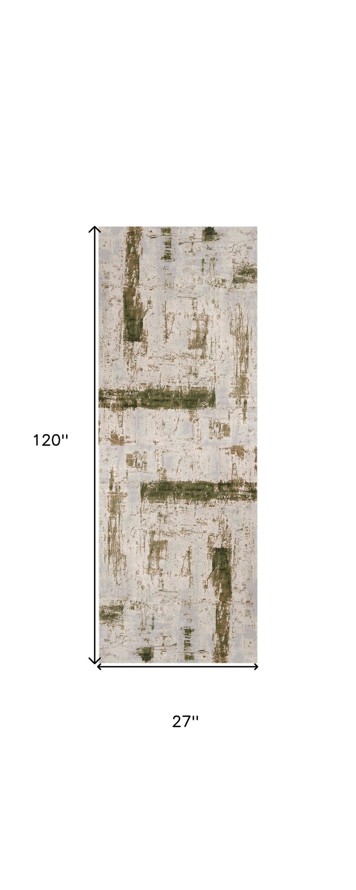 Add great coloration and comfortable texture to your space with this 10-foot green and ivory abstract power loom distressed runner rug. This runner shaped rug features a abstract design in green and ivory to give it visual interest. A classic shape marries with good looking design for your space ideal for spaces with kids and pets, this rug is stain resistant to help repel stains and spilled liquids. Area rugs help to give warmth and sense of home to your space. 27-inch H x 120-inch W x 0.8-inch D