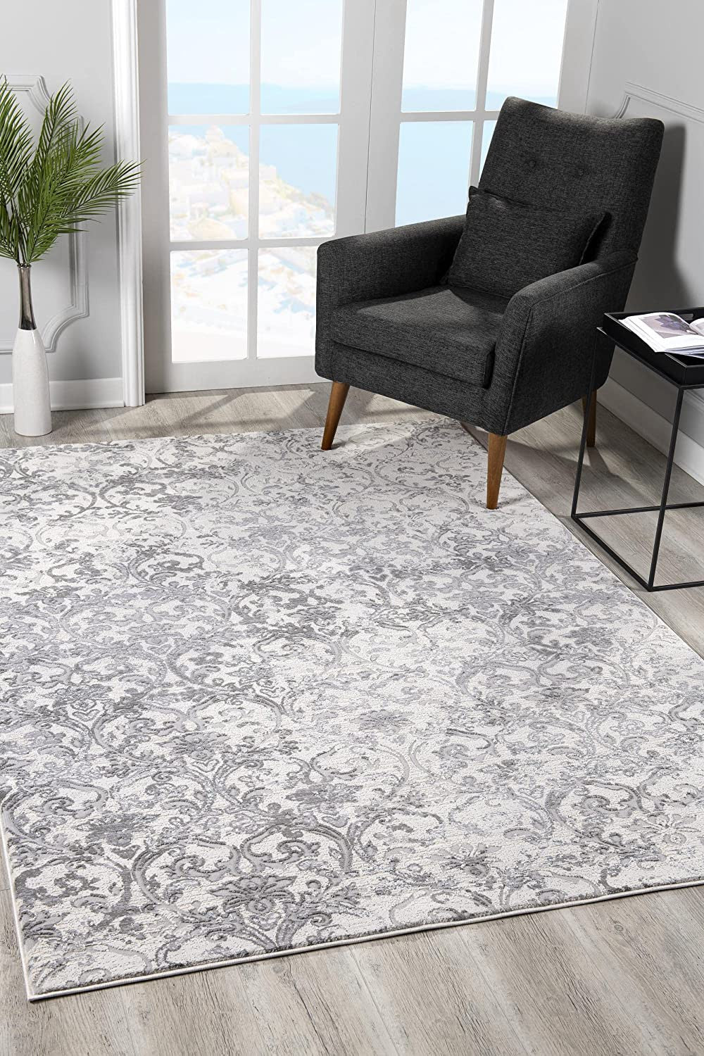 Add some artistry to your room with this 10-foot gray and ivory damask shag runner rug. Ideal for spaces with kids and pets, this rug is stain resistant to help repel dirt and spilled liquids. Built to last, this rug crafted from polyester and cotton fibers is known for its durability and long lasting appeal. Rugs are a great way to showcase your style, hide imperfections, warm your home and reduce noise. This rectangular shaped rug features a abstract design that will add a functional and decorative accent to your space. The retro shag construction of this luxurious rug will provide a soft and comfortable barrier to color tile and hardwood floors. This modern style runner makes a great accent for the hallway, in front of cabinets, in the laundry room, or any other space you need a narrow and long rug. 27-inch h x 120-inch w x 0.8-inch d.