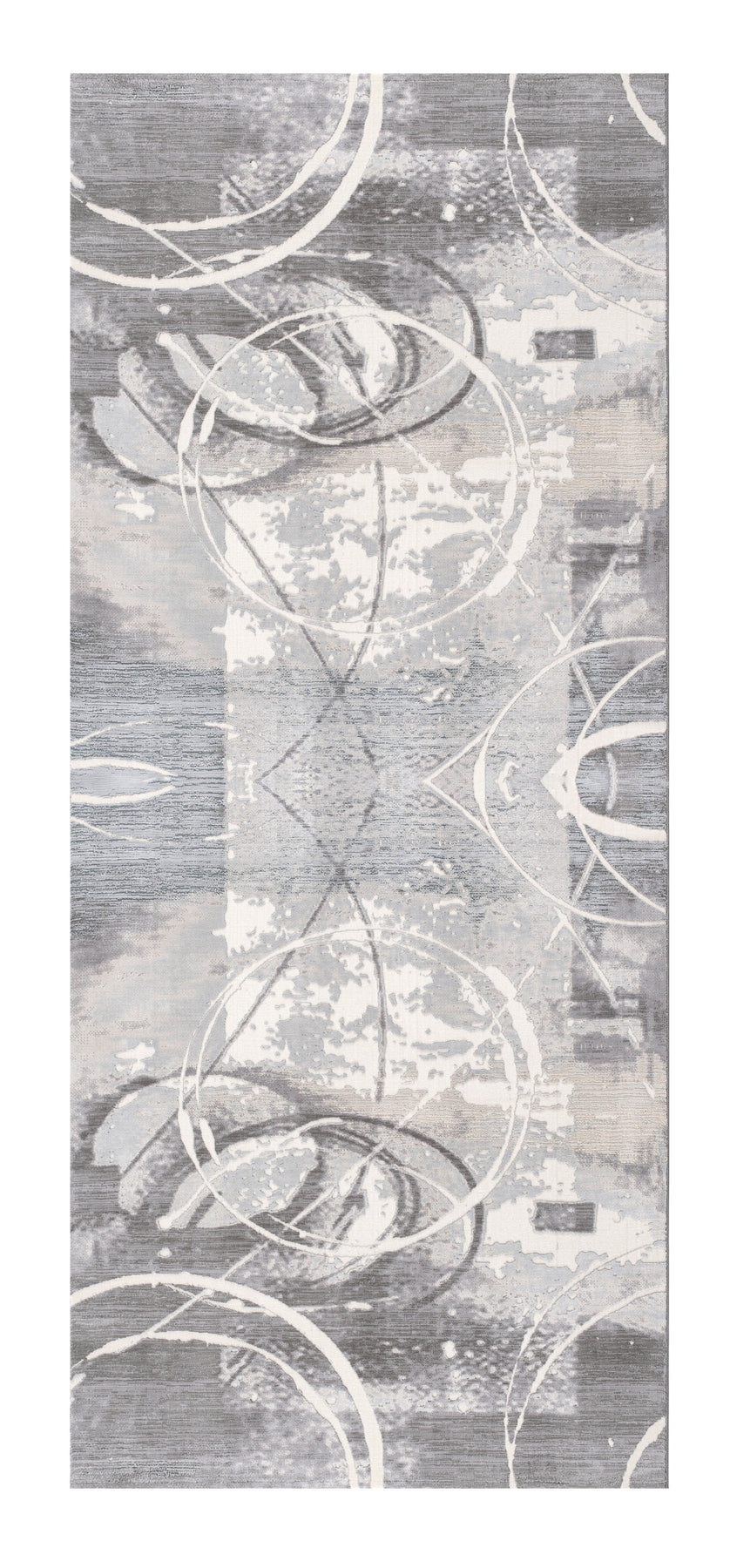Add some artistry to your room with this 10-foot gray and ivory abstract power loom distressed runner rug. This runner shaped rug features a abstract design in gray and ivory to give it visual interest. A classic shape marries with good looking design for your space ideal for spaces with kids and pets, this rug is stain resistant to help repel stains and spilled liquids. Place this area rug against a hardwood or tile floor and it will enliven your living space with style and sophistication. 27-inch H x 120-inch W x 0.8-inch D