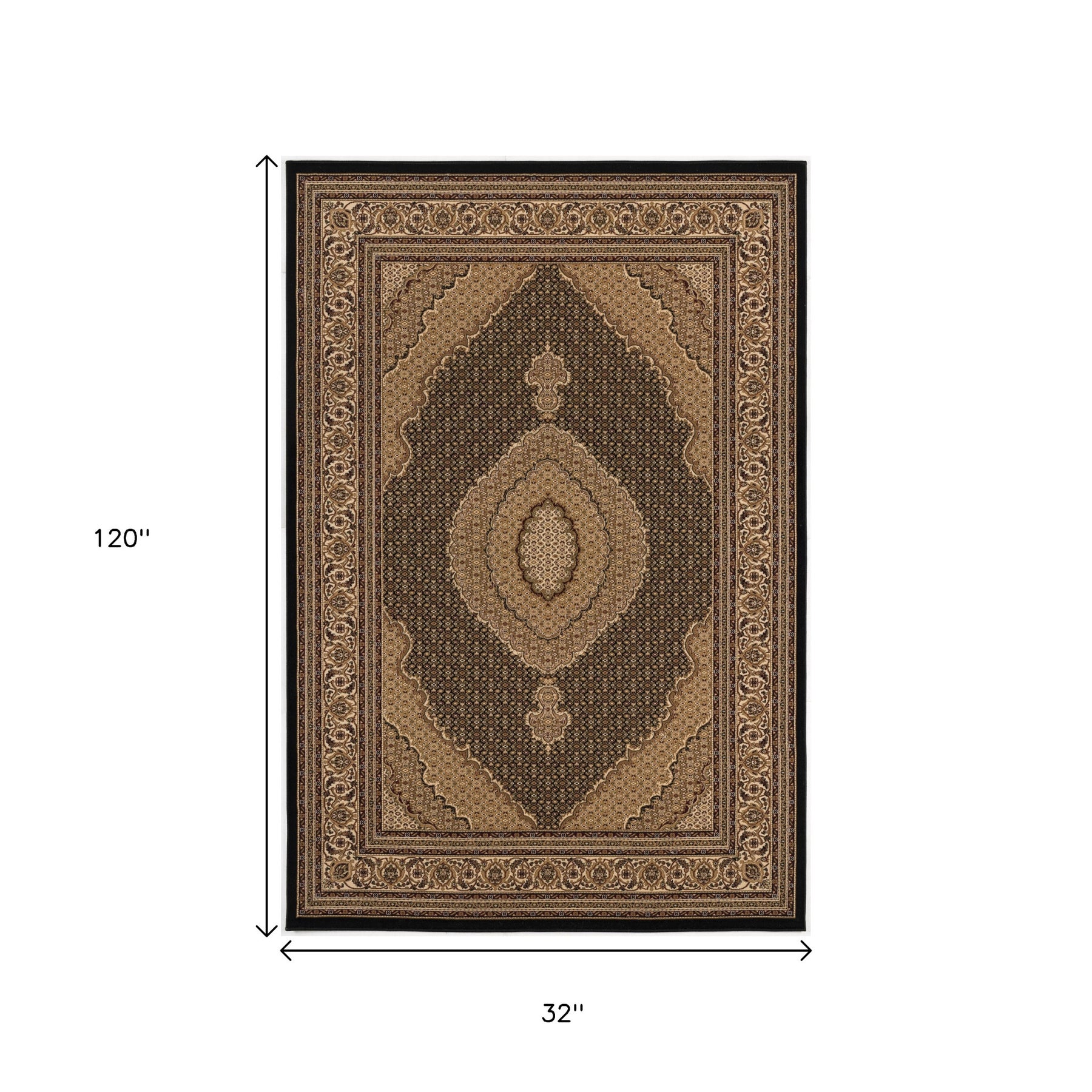 This 10-foot beige and black medallion runner rug, is a great way to add warmth to a room. Built to last, this rug crafted from olefin fibers is known for its durability and long lasting appeal. Rugs are a great way to showcase your style, hide imperfections, warm your home and reduce noise. This rectangular shaped rug features a abstract design that will add a functional and decorative accent to your space. This transitional style runner makes a great accent for the hallway, in front of cabinets, in the laundry room, or any other space you need a narrow and long rug. 32-inch h x 120-inch w x 0.6-inch d.