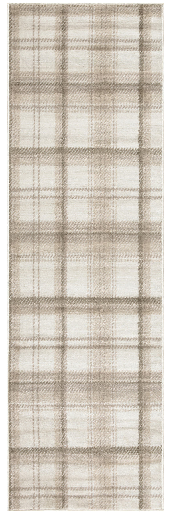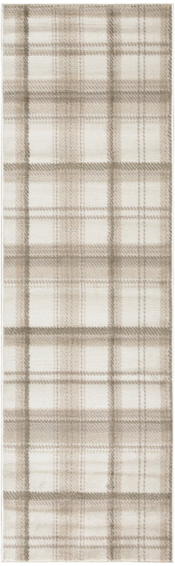 Add some artistry to your room with this 10-foot ivory plaid power loom runner rug. This runner shaped rug features a plaid design in ivory to give it visual interest. A classic shape marries with good looking design for your space the coloring of this rug adds a delightfully neutral tone to your home and will easily match with most any decor. Place this area rug against a hardwood or tile floor and it will enliven your living space with style and sophistication. 27-inch H x 120-inch W x 0.5-inch D