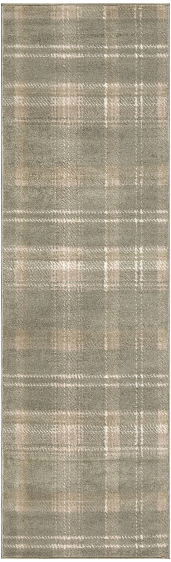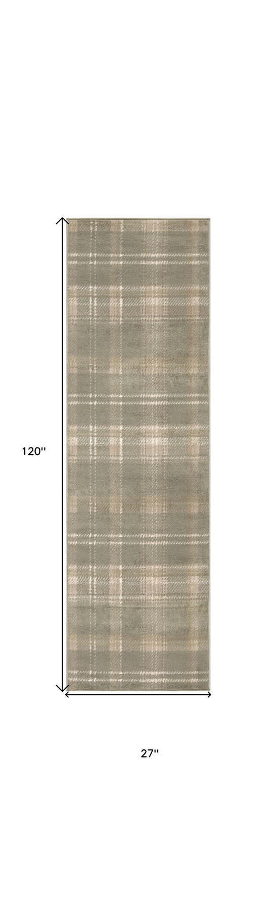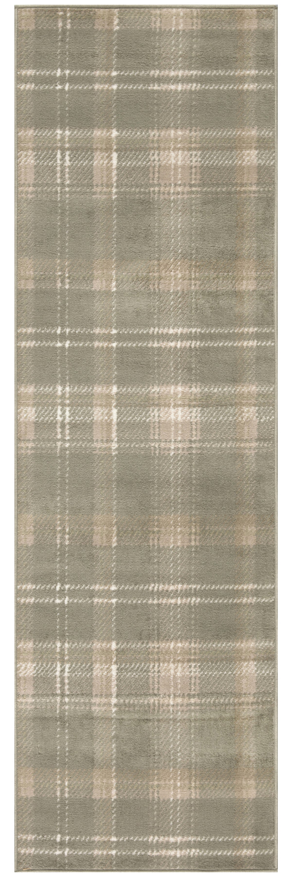 Set an inviting tone in your space with this 10-foot olive green and ivory plaid runner rug. Ideal for spaces with kids and pets, this rug is stain resistant to help repel dirt and spilled liquids. Built to last, this rug crafted from polypropylene fibers is known for its durability and long lasting appeal. Rugs are a great way to showcase your style, hide imperfections, warm your home and reduce noise. This rectangular shaped rug features a abstract design that will add a functional and decorative accent to your space. This cottage styled runners makes a great accent for the hallway, in front of cabinets, in the laundry room, or any other space you need a narrow and long rug. 27-inch h x 120-inch w x 0.5-inch d