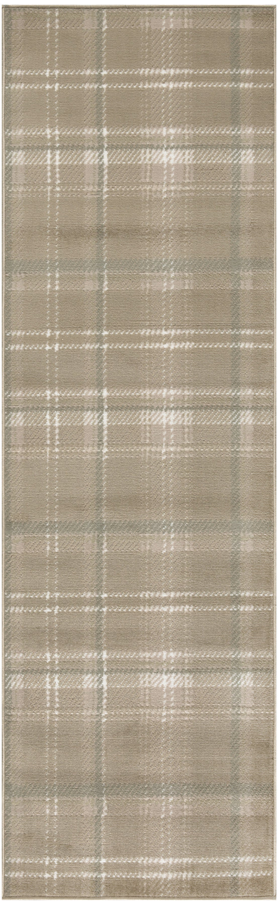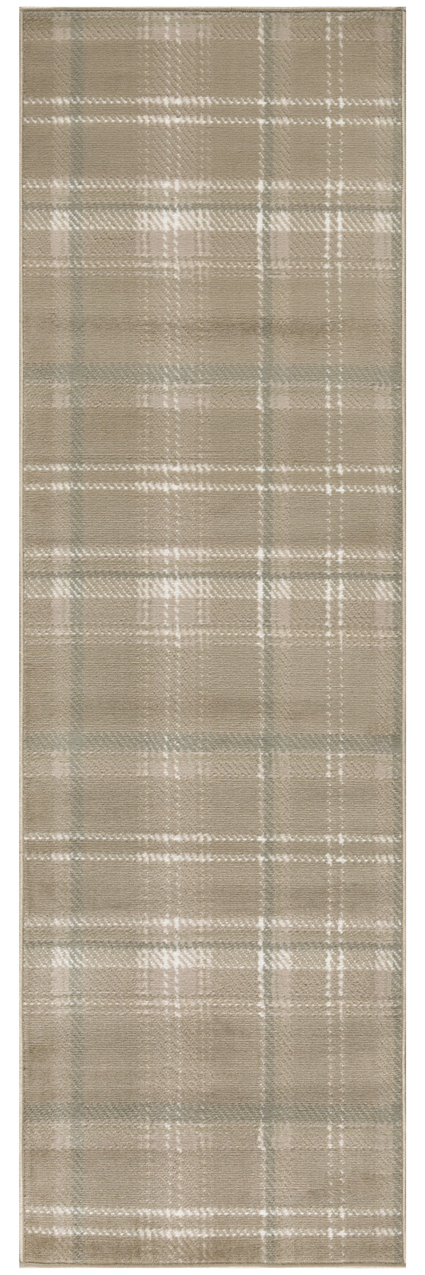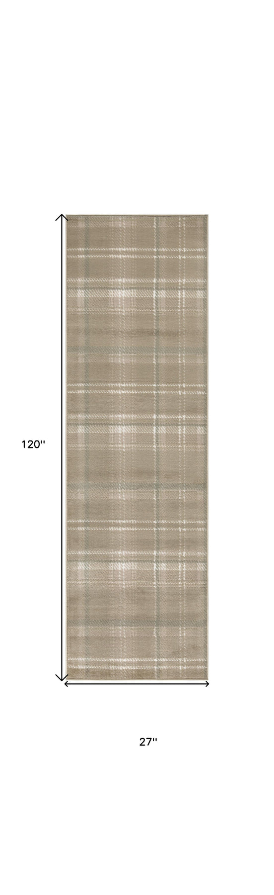 Set an inviting tone in your space with this 10-foot taupe and ivory plaid runner rug. Ideal for spaces with kids and pets, this rug is stain resistant to help repel dirt and spilled liquids. Built to last, this rug crafted from polypropylene fibers is known for its durability and long lasting appeal. Rugs are a great way to showcase your style, hide imperfections, warm your home and reduce noise. This rectangular shaped rug features a abstract design that will add a functional and decorative accent to your space. This cottage styled runners makes a great accent for the hallway, in front of cabinets, in the laundry room, or any other space you need a narrow and long rug. 27-inch h x 120-inch w x 0.5-inch d