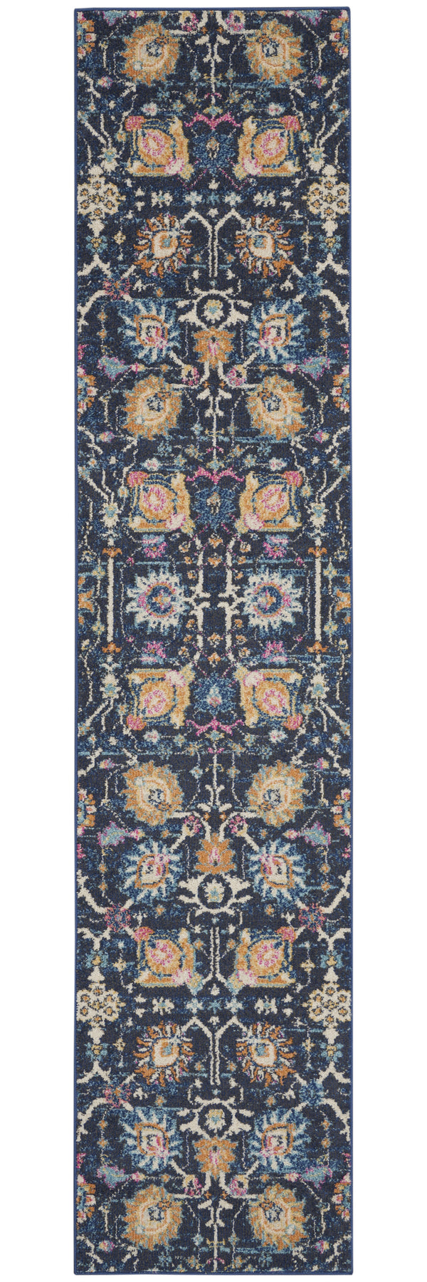 Set an inviting tone in your space with this 10-foot navy blue yellow and pink floral runner rug. Built to last, this rug crafted from polypropylene fibers is known for its durability and long lasting appeal. Rugs are a great way to showcase your style, hide imperfections, warm your home and reduce noise. This rectangular shaped rug features a abstract design that will add a functional and decorative accent to your space. This transitional style runner makes a great accent for the hallway, in front of cabinets, in the laundry room, or any other space you need a narrow and long rug. 26-inch h x 120-inch w x 0.5-inch d.