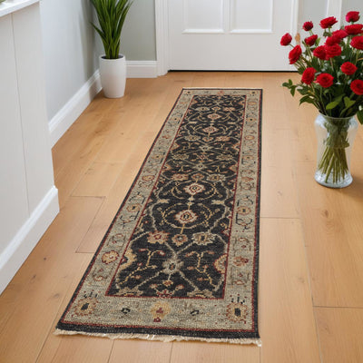 Home Outfitters 3' X 5' Ivory Brown And Blue Wool Botanical Leaves Hand Tufted Area Rug
