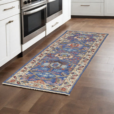 Home Outfitters 4' X 6' Blue And Ivory Oriental Distressed Area Rug