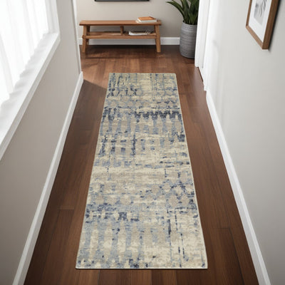 Home Outfitters 4' X 6' Ivory And Blue Abstract Printed Stain Resistant Non Skid Area Rug