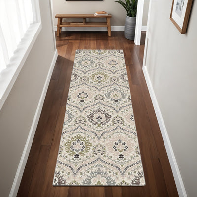 Home Outfitters 4' X 6' Ivory and Gray Floral Distressed Non Skid Area Rug