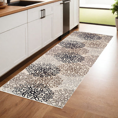 Home Outfitters 4' X 6' Gray and Ivory Medallion Power Loom Distressed Area Rug