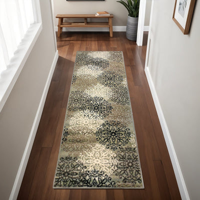 Home Outfitters 4' X 6' Beige and Ivory Medallion Power Loom Distressed Area Rug