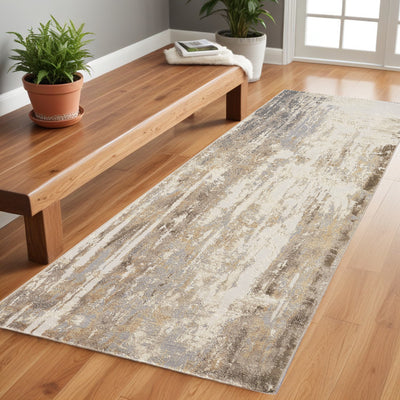 Home Outfitters 4' X 6' Beige And Grey Abstract Power Loom Non Skid Area Rug