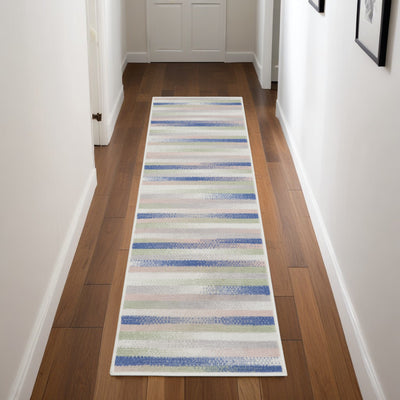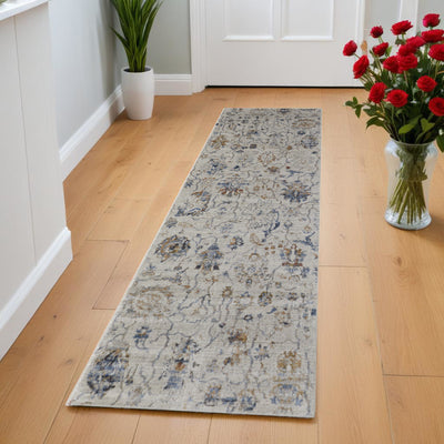 Home Outfitters 4' X 6' Blue And Beige Abstract Power Loom Distressed Non Skid Area Rug