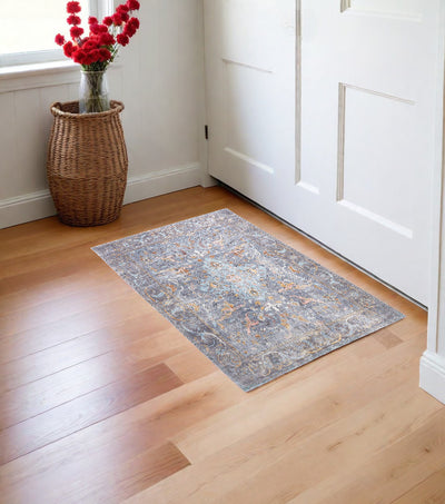 Home Outfitters 2' X 3' Blue and Gray Abstract Power Loom Area Rug