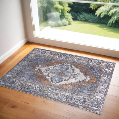 Home Outfitters 2' X 3' Blue And Beige Oriental Area Rug