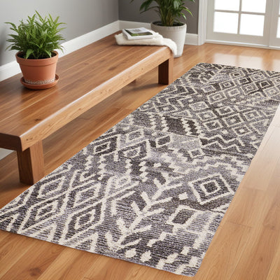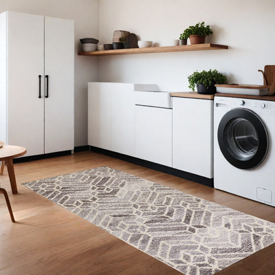 Home Outfitters 4' X 5' Ivory Gray And Tan Diamond Shag Area Rug With Fringe