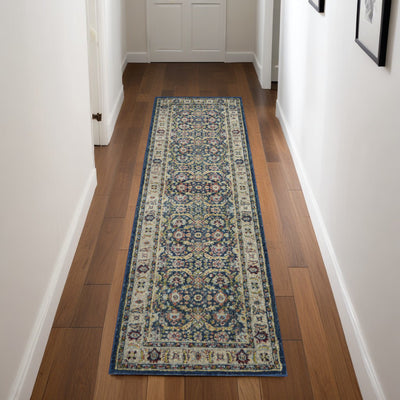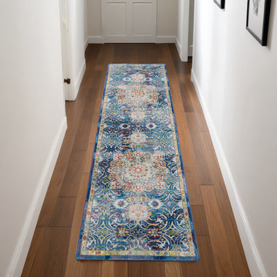 Home Outfitters 4' X 6' Blue And Ivory Floral Area Rug With Fringe
