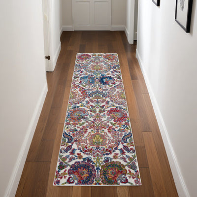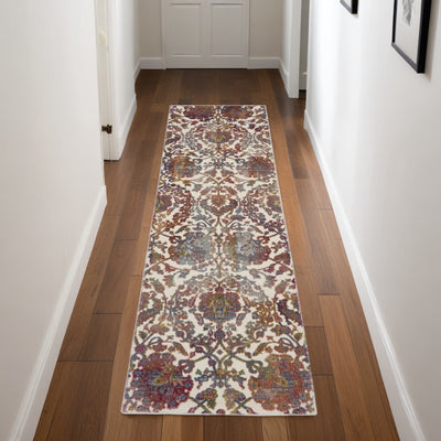 Home Outfitters 4' X 6' Ivory Blue And Light Brown Floral Area Rug With Fringe