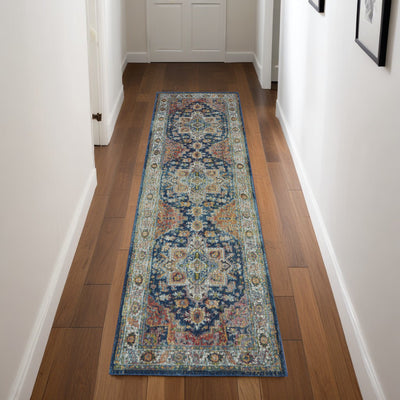 Home Outfitters 4' X 6' Blue And Gray Medallion Area Rug