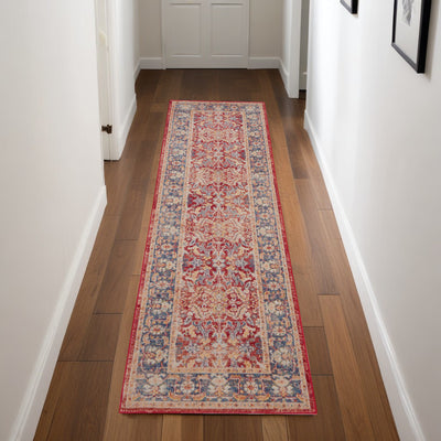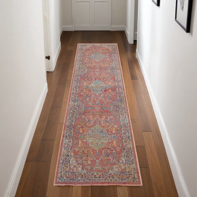 Home Outfitters 4' X 6' Red Blue And Charcoal Oriental Area Rug With Fringe