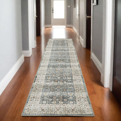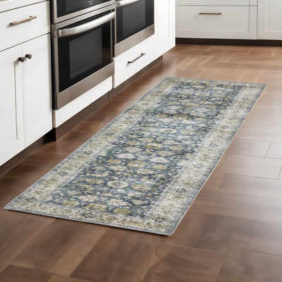 Home Outfitters 4' X 6' Ivory Blue Gold And Grey Oriental Power Loom Stain Resistant Area Rug