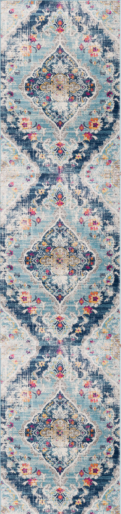 Home Outfitters 4' X 6' Blue And Ivory Medallion Distressed Area Rug
